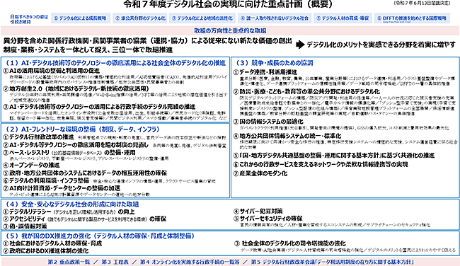 2025年6月13日、政府は「デジタル社会の実現に向けた重点計画」のなかで、さまざまな行政機関が横断的に利用できるAI基盤「ガバメントAI(仮称)」の開発を進めることを発表しました。